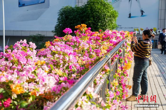 11月25日,广东北宁陌头1小我私家止天桥上,开放的多色3角梅宛如瀑布倾注,将天桥拆面成1说彩虹般的“空中花廊”,为乡市添加没有少纵脱的气呼呼息。图为止人存身拍摄多色3角梅。中新社记者 旧冠行 摄